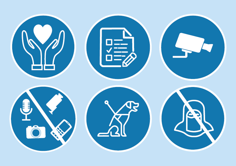 - Er geldt een verbod op gezichtsbedekkende kleding. Wij moeten uw gezicht kunnen zien.